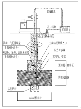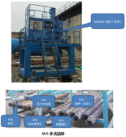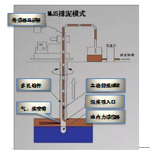 使用多孔鉆桿,利用設(shè)置在鉆頭的地內(nèi)應(yīng)力感應(yīng)器,來控制主動排泥漿將的多少,從而達到控制地內(nèi)應(yīng)力,防止周圍土體的位移,和對周圍土質(zhì)、水文以及地面環(huán)境的影響。由于是主動集中的排泥,說以對環(huán)境的影響較小,基本忽略不計。地內(nèi)壓力得到控制,所以樁的直徑和樁的深度方面,都得到了提高。我公司在此技術(shù)基礎(chǔ)上,針對國內(nèi)的土質(zhì)情況,又進行了深化改進,結(jié)合RJP工藝的預(yù)切割、稀釋技術(shù),使MJS的成樁直徑和成樁深度得到進一步的提高。