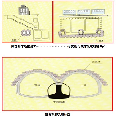 (5) 建筑物、構(gòu)筑物的基礎(chǔ)承載力的加強、沉降的控制。
