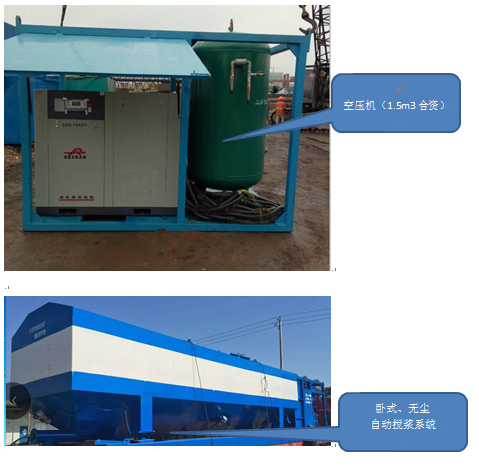 (2) 三種介質:三種不同機械供應三種不同介質(壓縮空氣、高壓水、超高壓水泥漿)。