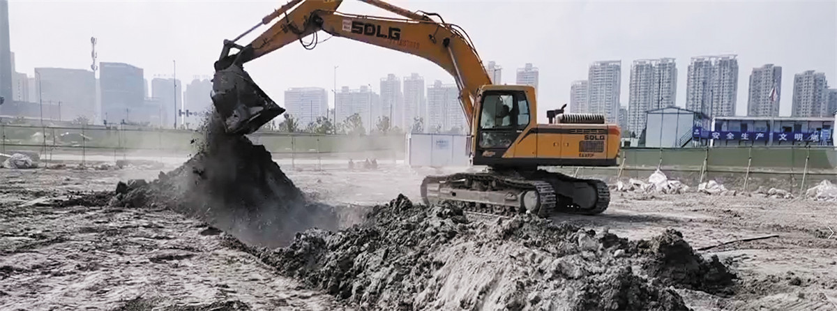 工程特點:對渣土采用ALLU攪拌斗加干粉固化劑進行硬化處理技術,最終處理渣土硬化量近5萬立方米。